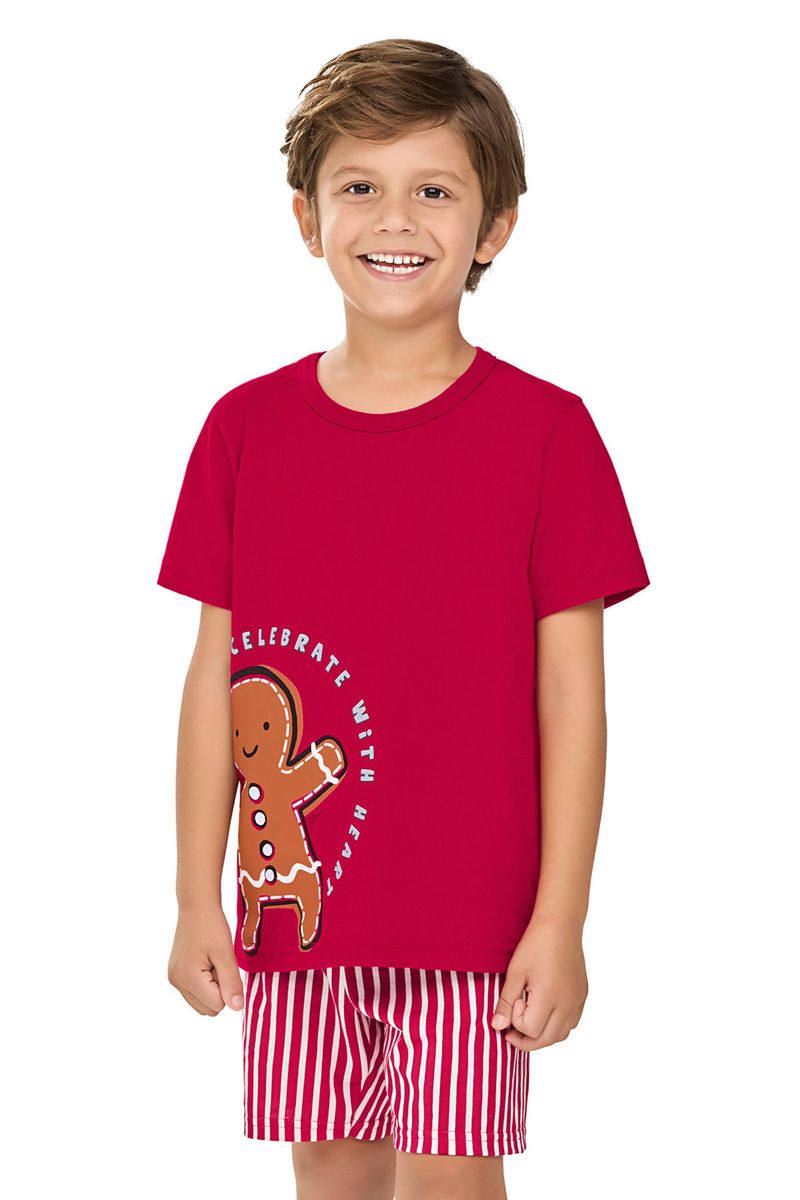 • Pijama composto por camiseta e bermuda • Feito em meia malha • Estampa com tema natalino • Detalhes em puff • Elástico no cós • Ideal para noites em família