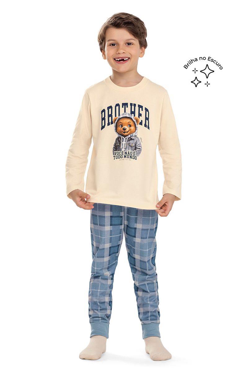• Pijama composto por camiseta e calça • Feito em meia malha • Possui mangas longas • Possui estampa com tema de família • Possui elástico no cós • Possui detalhes que brilham no escuro • Ideal para noites tranquilas