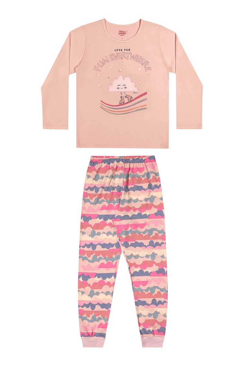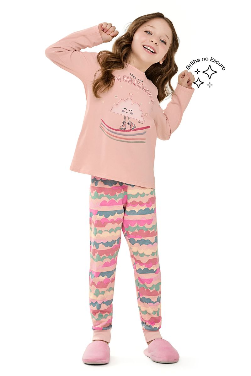 Pijama Infantil Menina Longo Nuvens Brilha no Escuro Elian Rosa REF: 13124-4119