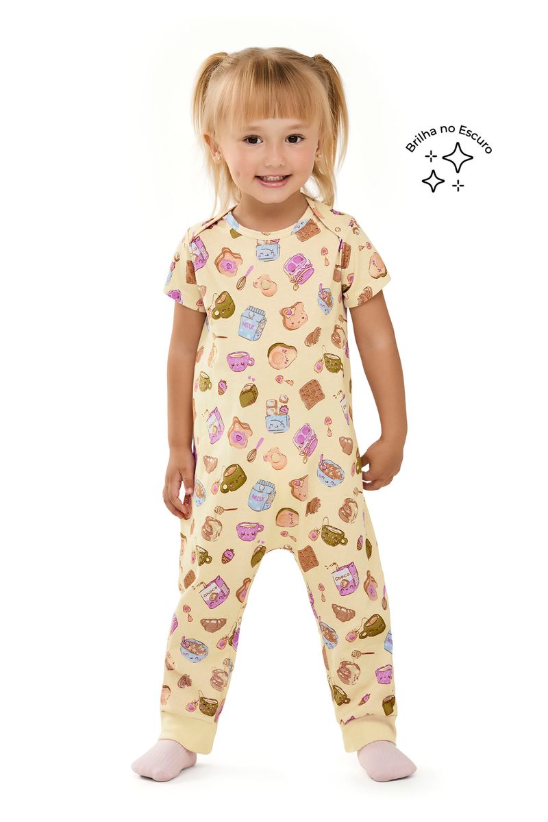 Macacão Pijama Bebê Menina Brilha no Escuro Elian Amarelo REF: 13125-2039