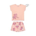 • Pijama composto por blusa e short • Feito em meia malha • Estampa com capivaras e glitter • Detalhes que brilham no escuro • Elástico no cós
