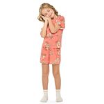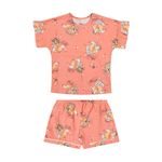 • Pijama composto por blusa e short • Feito em meia malha • Manga curta com babados • Estampa com raposas • Detalhes que brilham no escuro • Elástico no cós