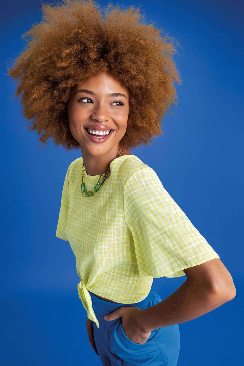 Blusa Feminina com Amarração Xadrez Marialícia Verde REF: 183081-5135