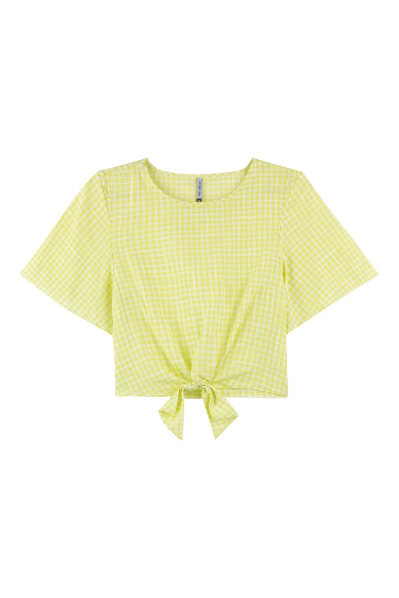 AdultoFemininoBlusas FemininoBlusa Feminina com Amarração Xadrez Marialícia Verde