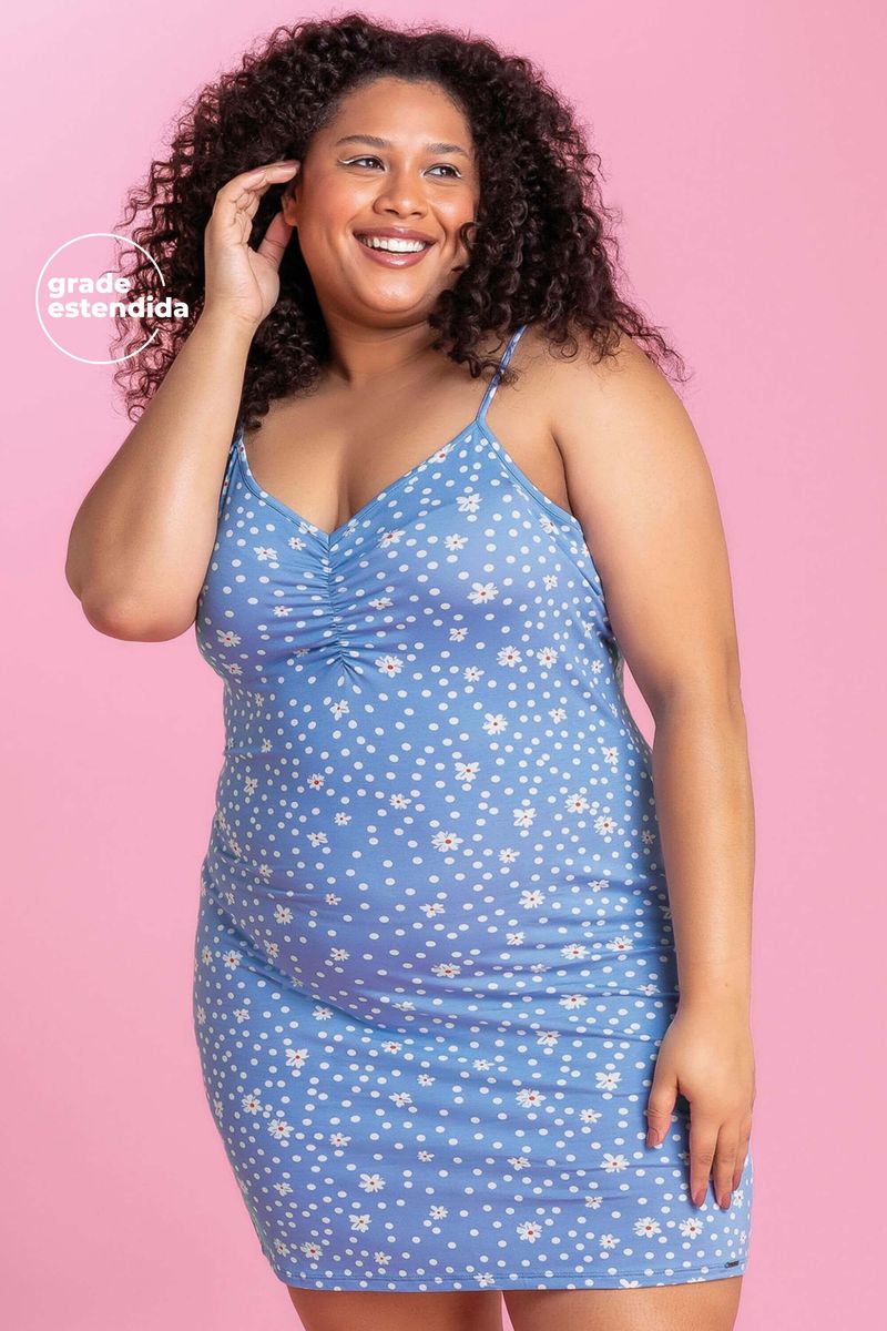 AdultoFemininoPijamas FemininoCamisola Feminina Curta Estampada Bolinhas Marialícia Azul