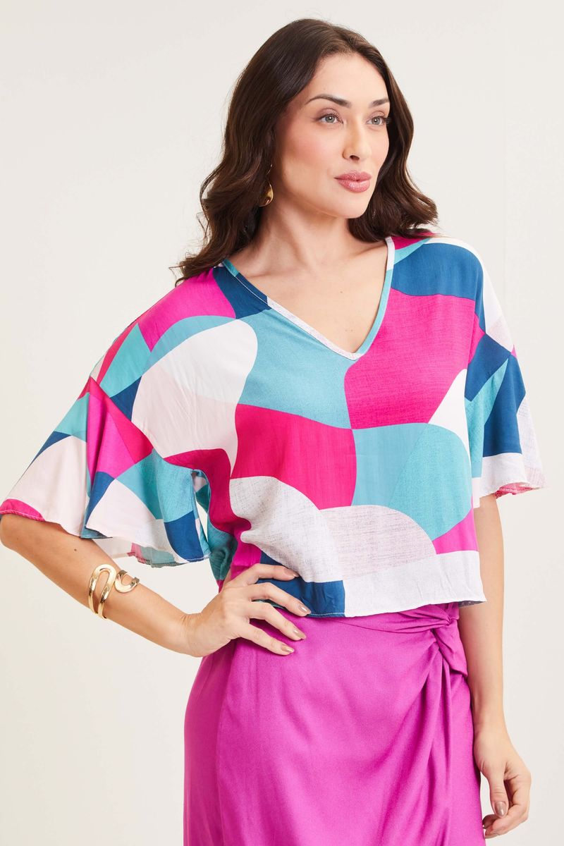 Blusa Feminina Estampada Cores Marialícia Rosa REF: 183156-4056