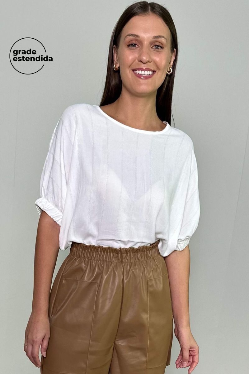 AdultoFemininoBlusas FemininoBlusa Feminina com Lurex Ampla Marialícia Bege