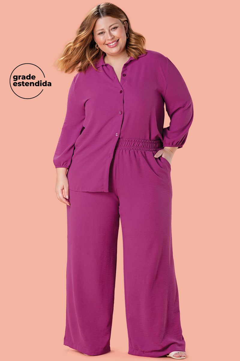 Calça Feminina Pantalona com Elástico Marialícia Rosa REF: 183189-4921