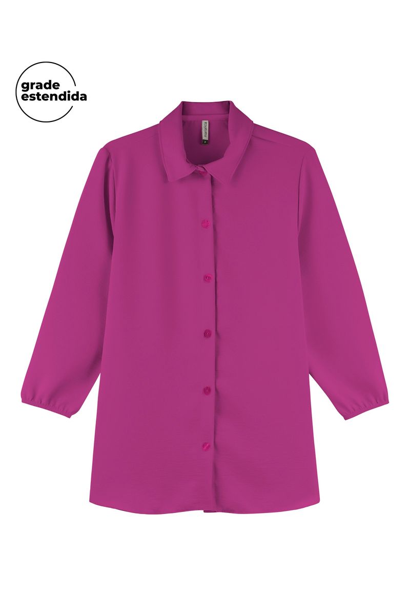 Camisa Feminina Alongada Manga Bufante Marialícia Rosa REF: 183198-4921