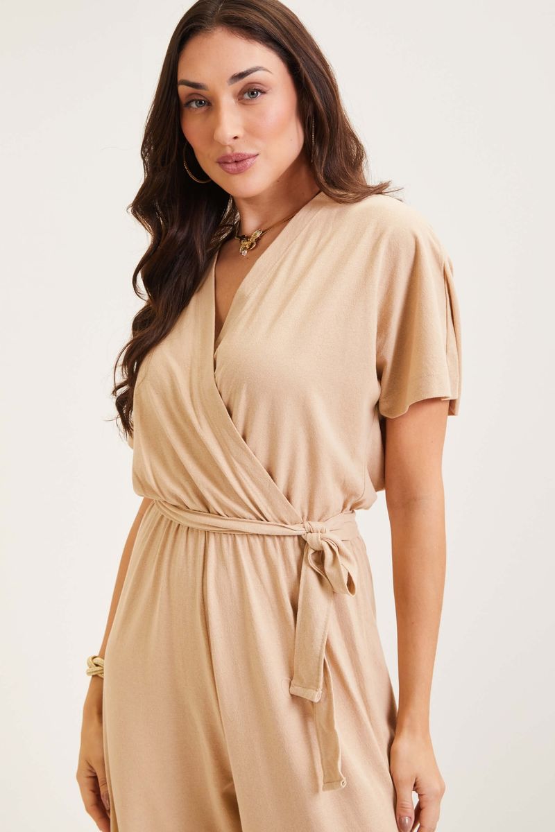 AdultoFemininoMacacões FemininoMacacão Feminino Transpassado Moderno Marialícia Bege