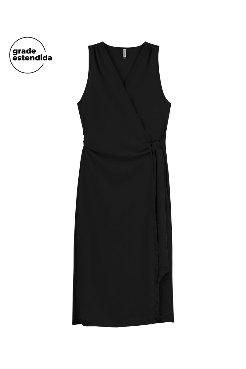 AdultoFemininoVestidos FemininoVestido Feminino Midi Transpassado com Amarração Marialícia Preto