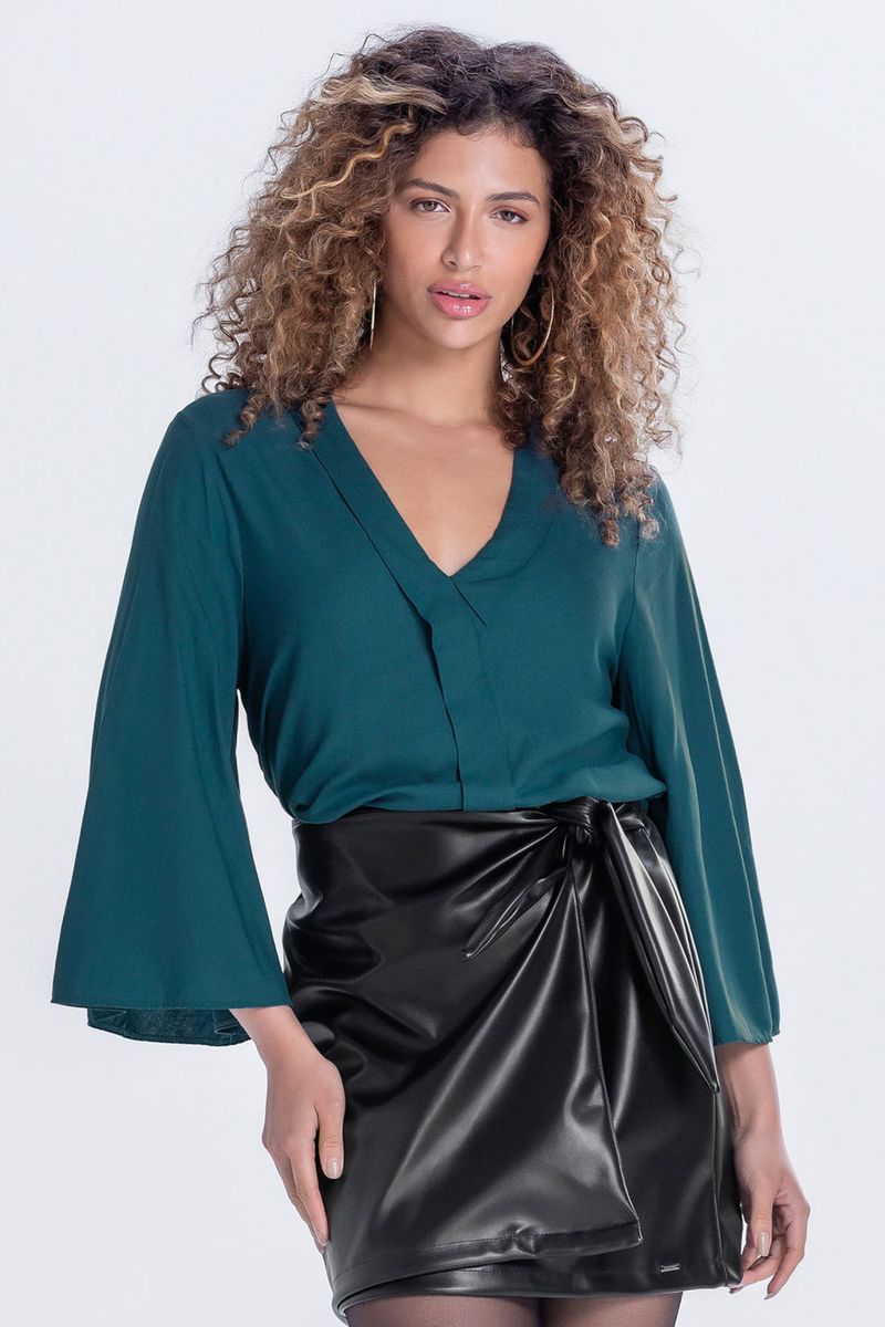 Blusa Feminina Manga Ampla Marialícia Verde Escuro REF: 183291-5031