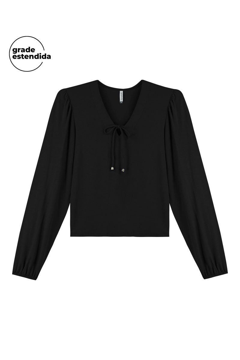 AdultoFemininoBlusas FemininoBlusa Feminina com Amarração Marialícia Preto