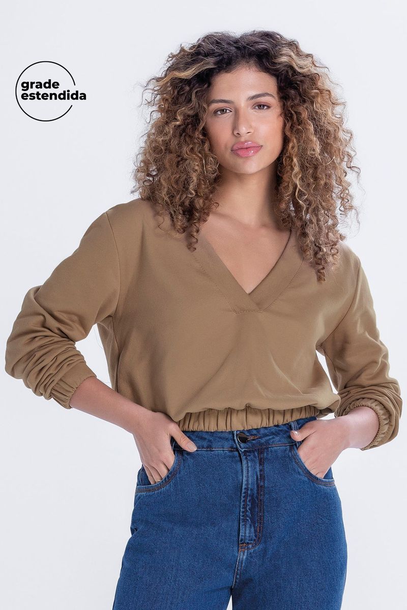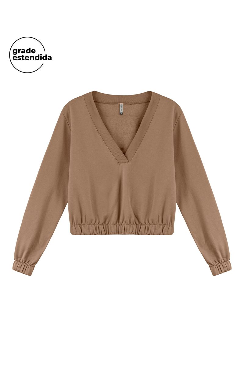 Blusão Feminino de Moletom Felpado Marialícia Marrom Claro REF: 183328-8014