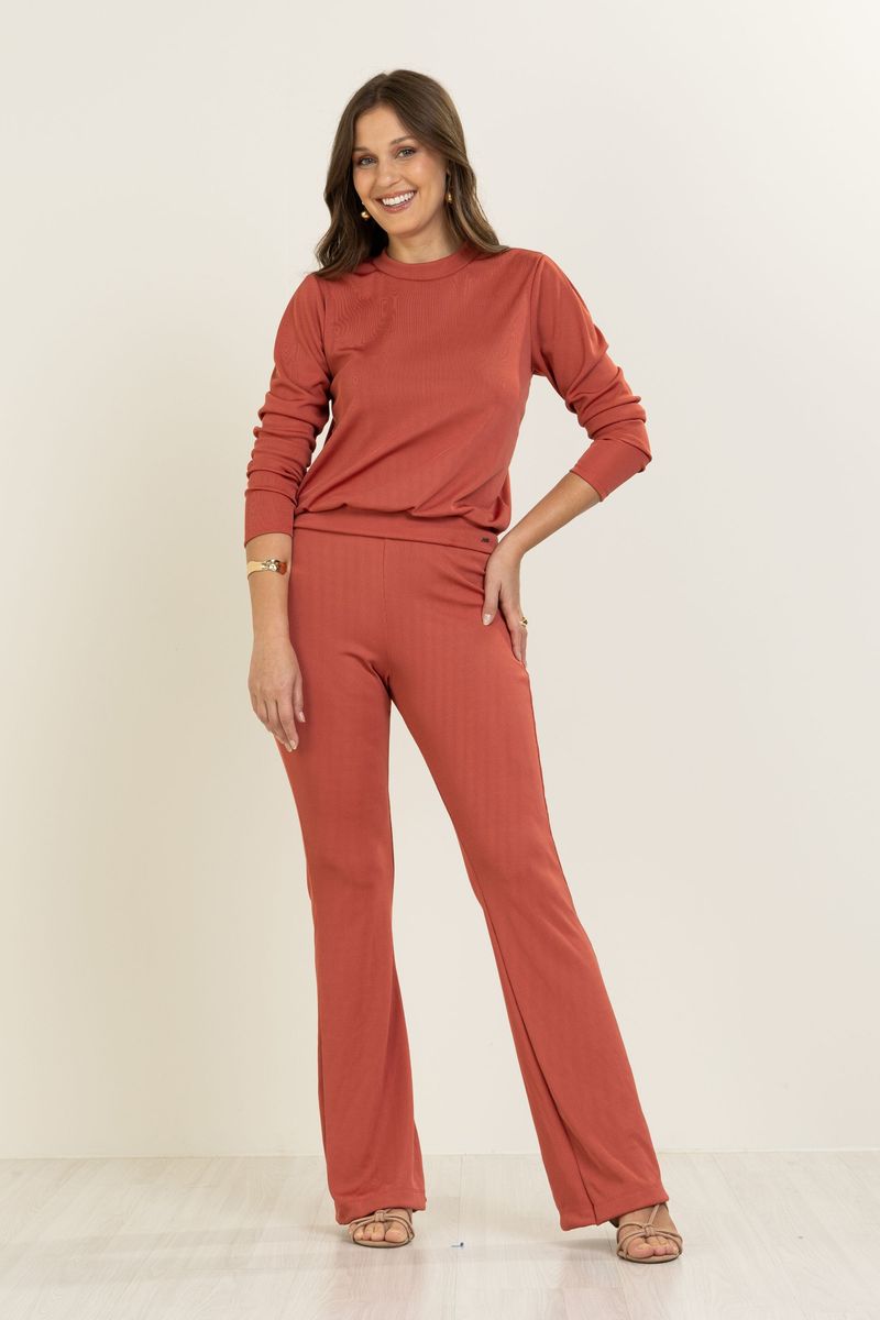 Calça Feminina em Malha Canelada Flare Marialícia Rosa REF: 183342-4029