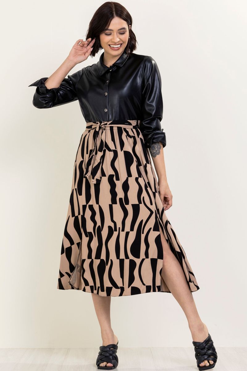 Saia Feminina com Fenda Lateral Marialícia Marrom Claro REF: 183432-8014