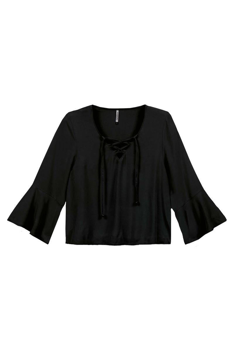 Blusa Feminina Decote com Amarração Marialícia Preto REF: 183479-7001