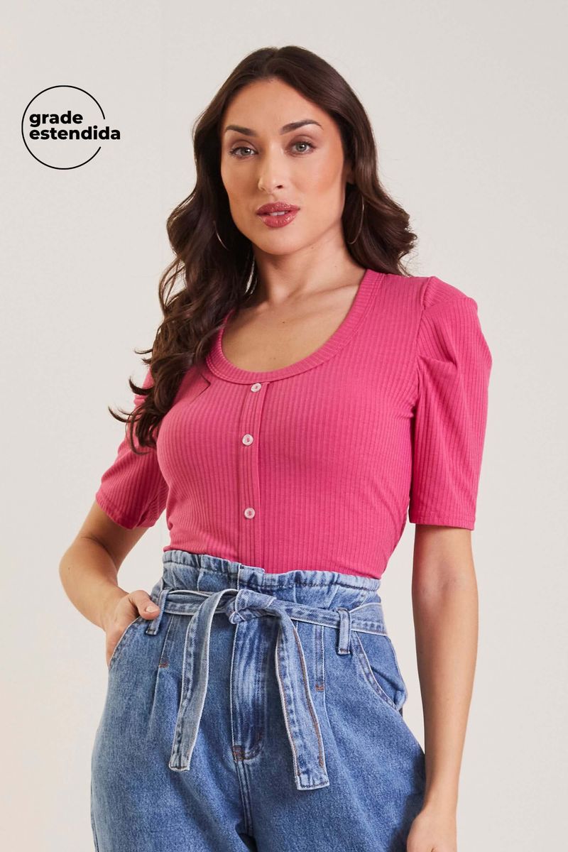 AdultoFemininoBlusas FemininoBlusa Feminina Canelada de botões Marialícia Rosa