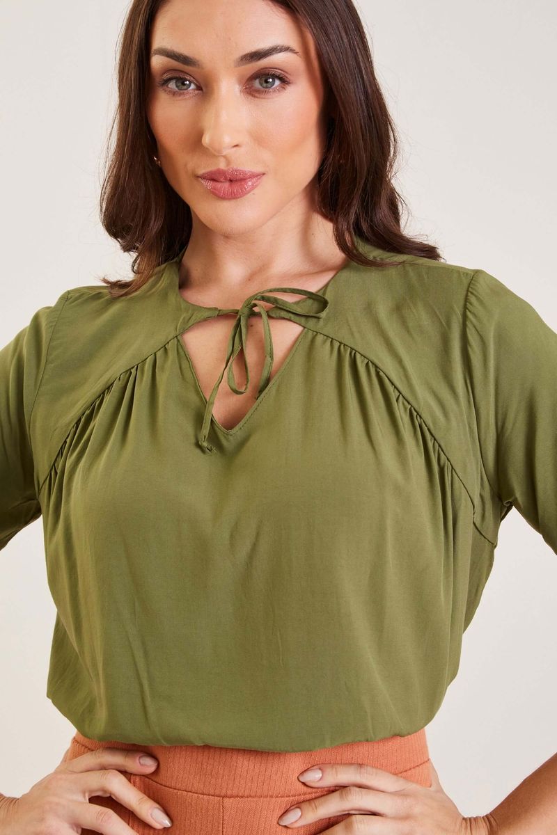 AdultoFemininoBlusas FemininoBlusa Feminina Decote Detalhado Marialícia Verde