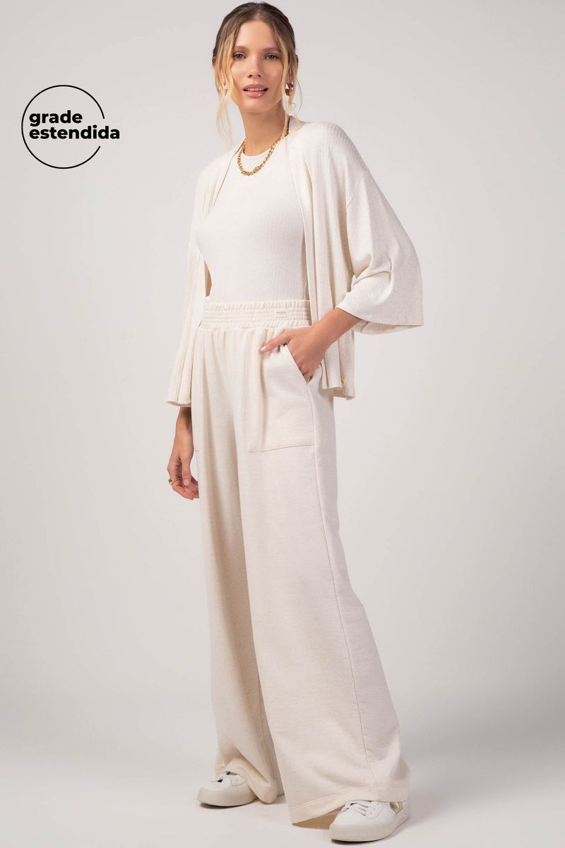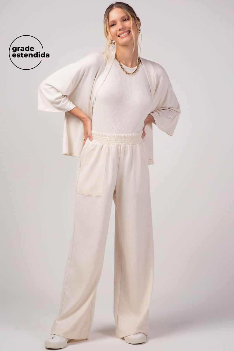 AdultoFemininoCalças FemininoCalça Feminina Pantalona Moletinho Marialícia Bege