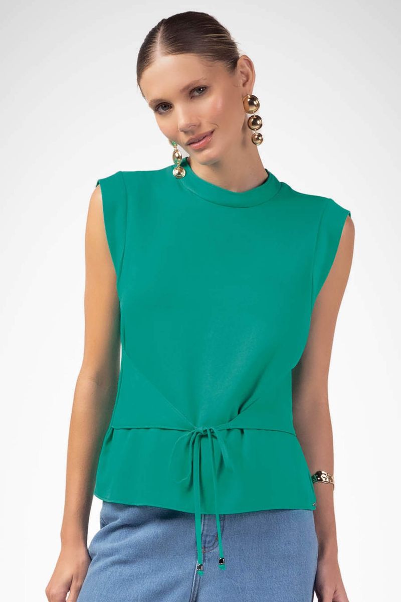 AdultoFemininoBlusas FemininoRegata Feminina Creponada com Amarração Marialícia Verde