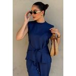 AdultoFemininoBlusas FemininoRegata Feminina Creponada com Amarração Marialícia Azul