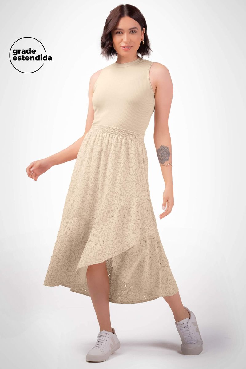 Saia Feminina Midi Devorê Marialícia Bege REF: 183544-2039