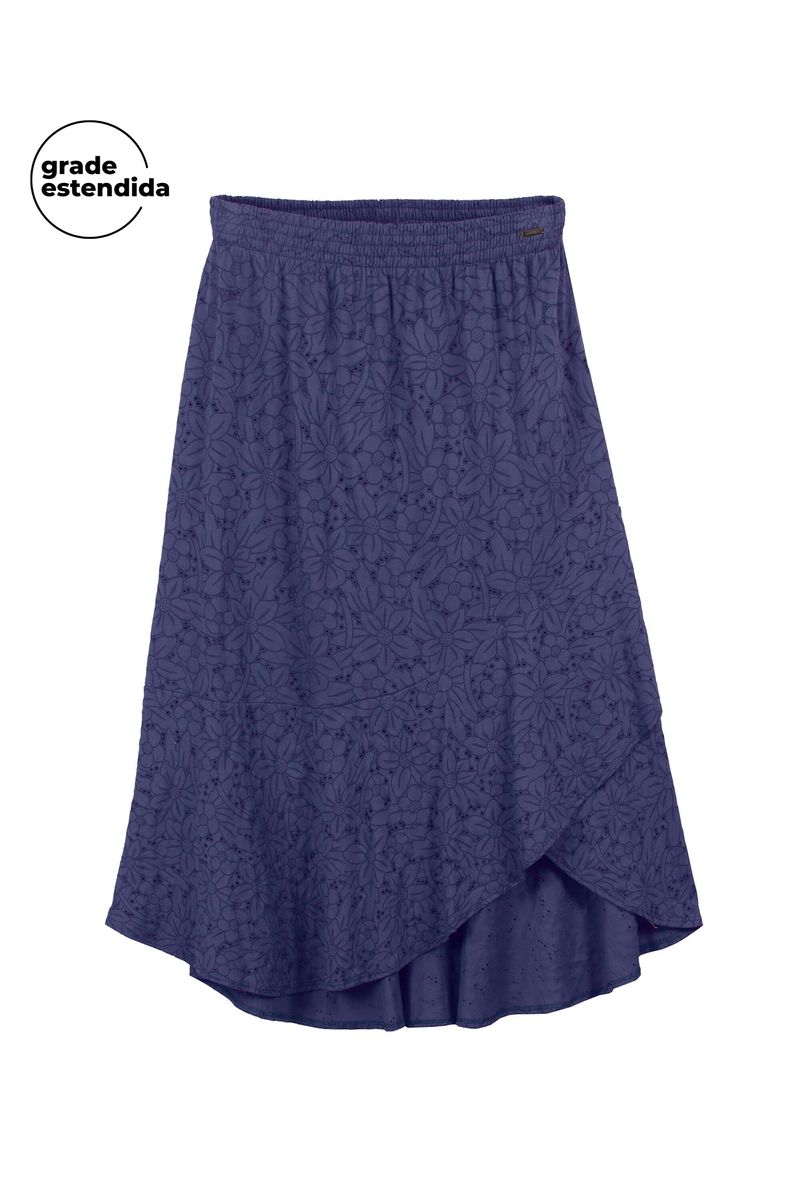 Saia Feminina Midi Devorê Marialícia Azul REF: 183544-6092