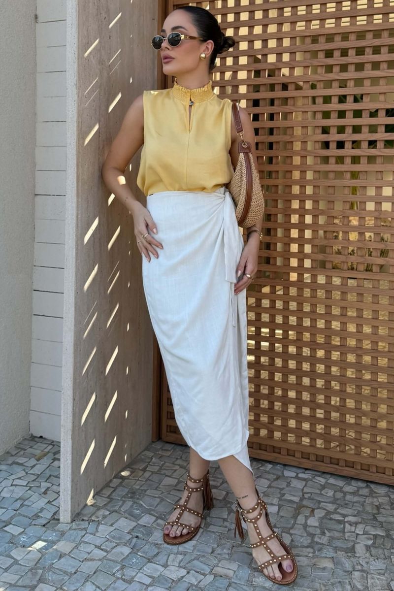 AdultoFemininoSaias FemininoSaia Feminina com Amarração Lateral Marialícia Cinza