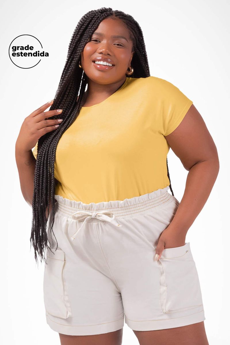 AdultoFeminino Plus SizeShorts Plus SizeShorts Feminino de Sarja com Cordão Marialícia Cinza