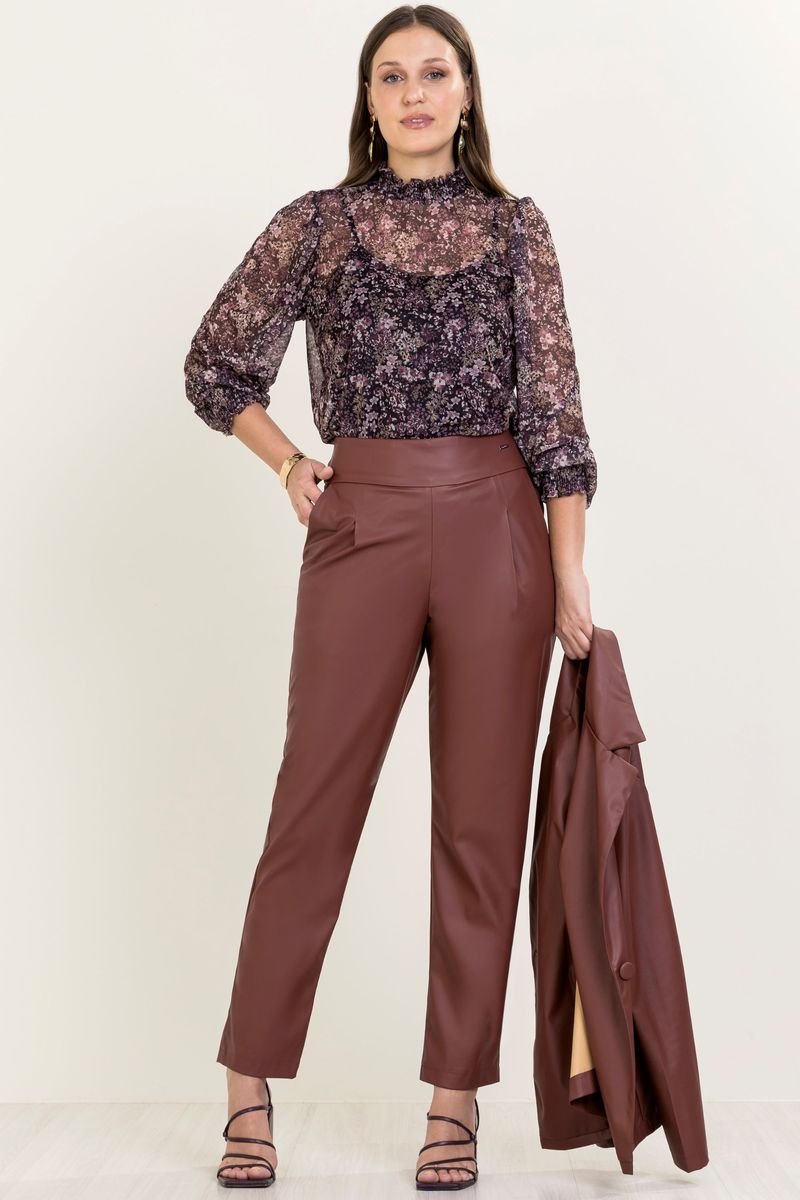 AdultoFemininoCalças FemininoCalça Feminina em Courino Marialícia Marrom