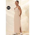 Vestido Feminino Longo Alça Fina Comfy Marialícia Bege REF: 183655-2039