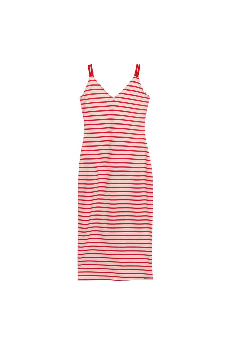Vestido Feminino Listrado Marialícia Vermelho REF: 183663-8506