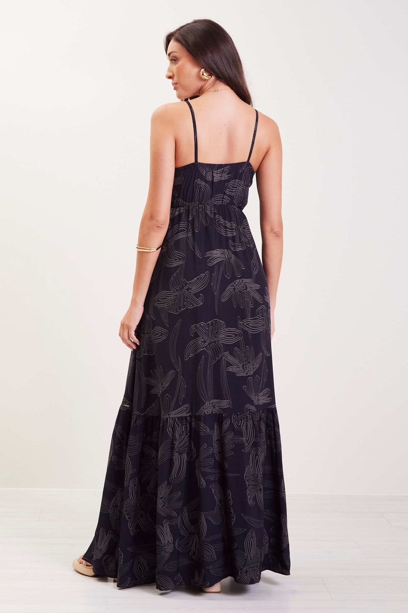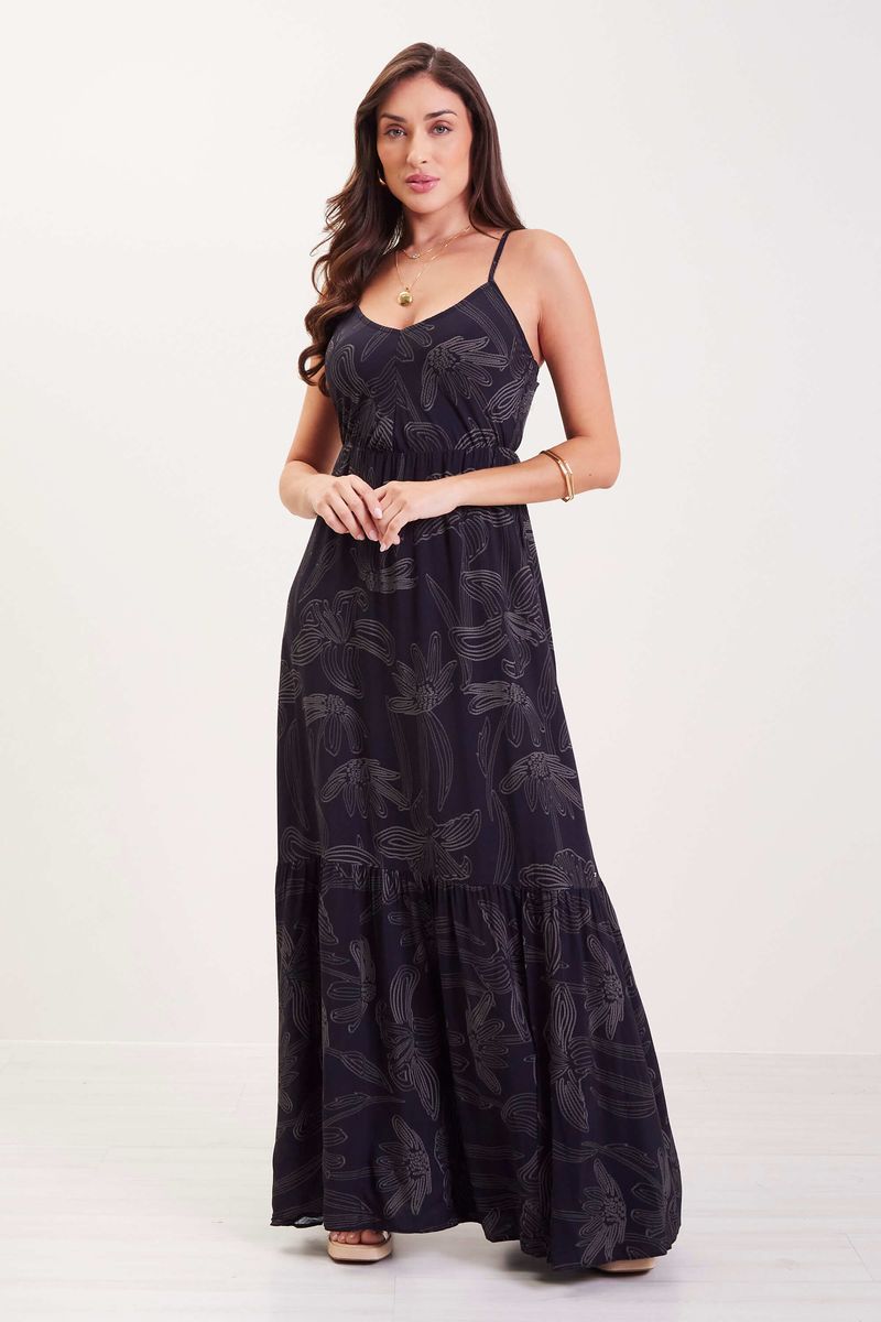 AdultoFemininoVestidos FemininoVestido Feminino Estampado Longo Marialícia Preto