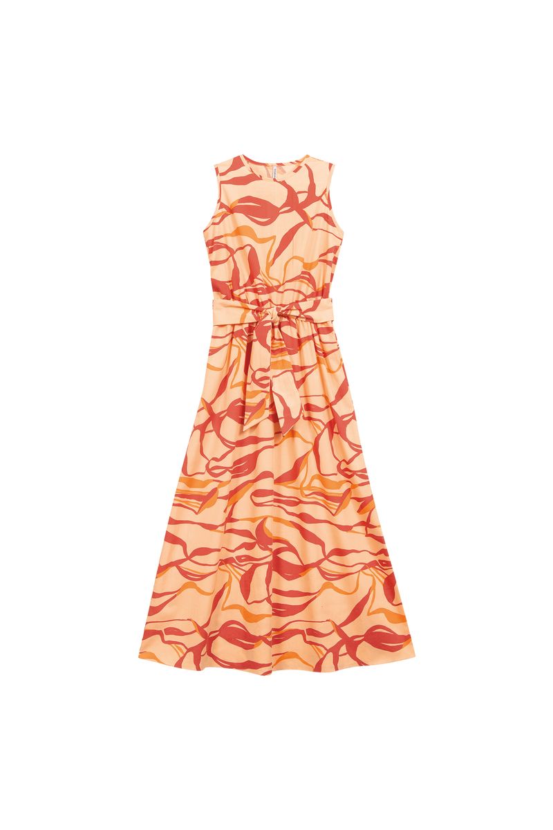 Vestido Feminino Longo Abstrato Marialícia Laranja REF: 183680-3144