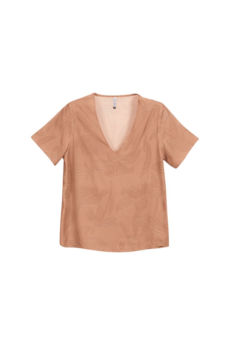 Blusa Feminina Decote V Floral Marialícia Laranja REF: 183712-3044