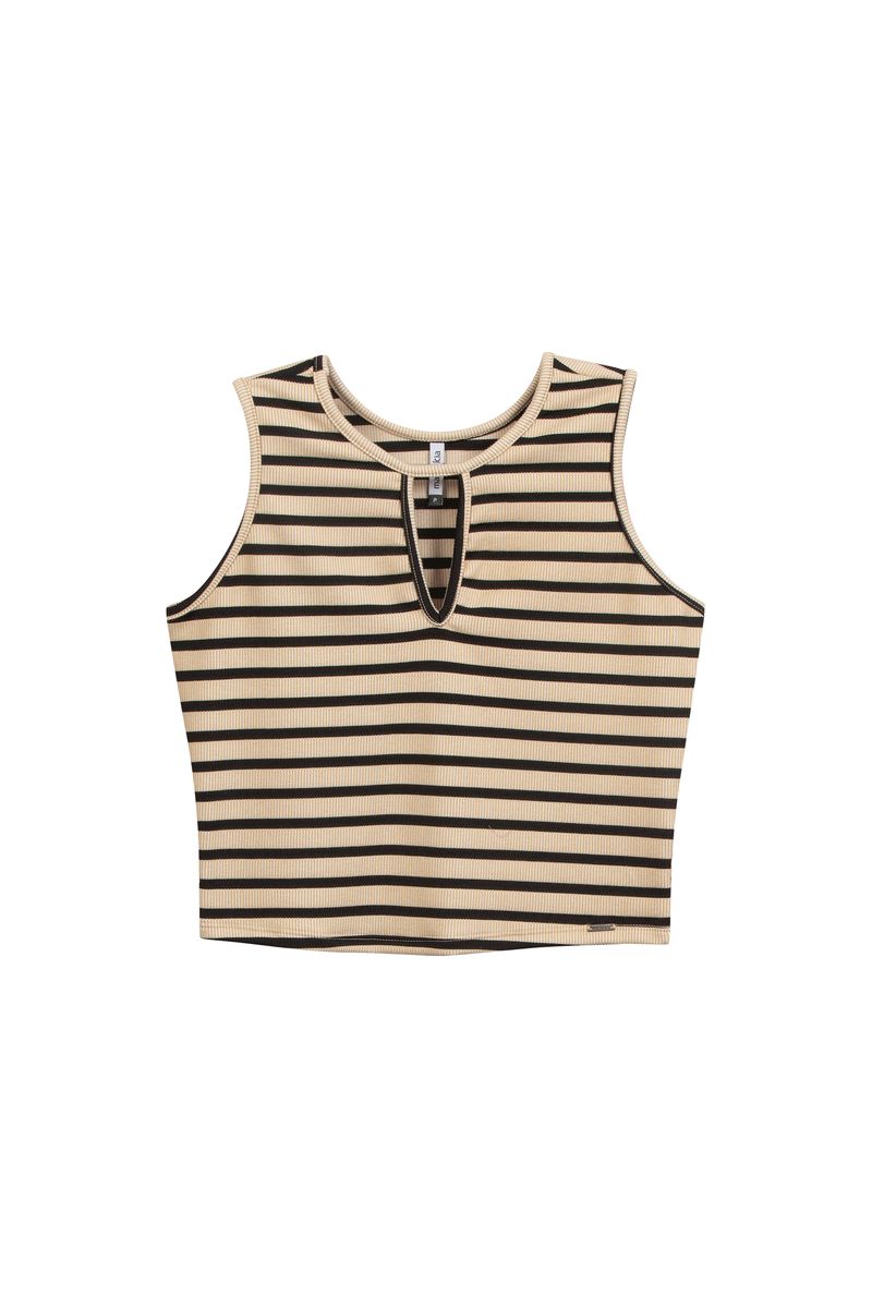 AdultoFemininoRegatas FemininoRegata Feminina Listrada Com Abertura Marialícia Bege