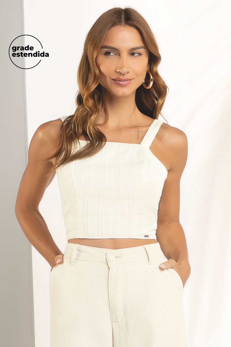 Cropped Feminino Alça Grossa Marialícia Bege REF: 183734-2037