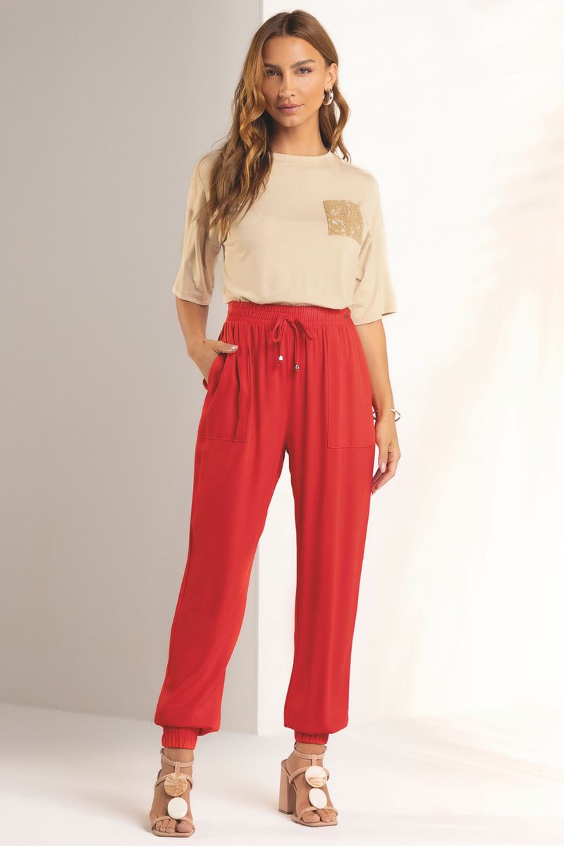 Calça Feminina Creponada Marialícia Vermelho REF: 183765-4065