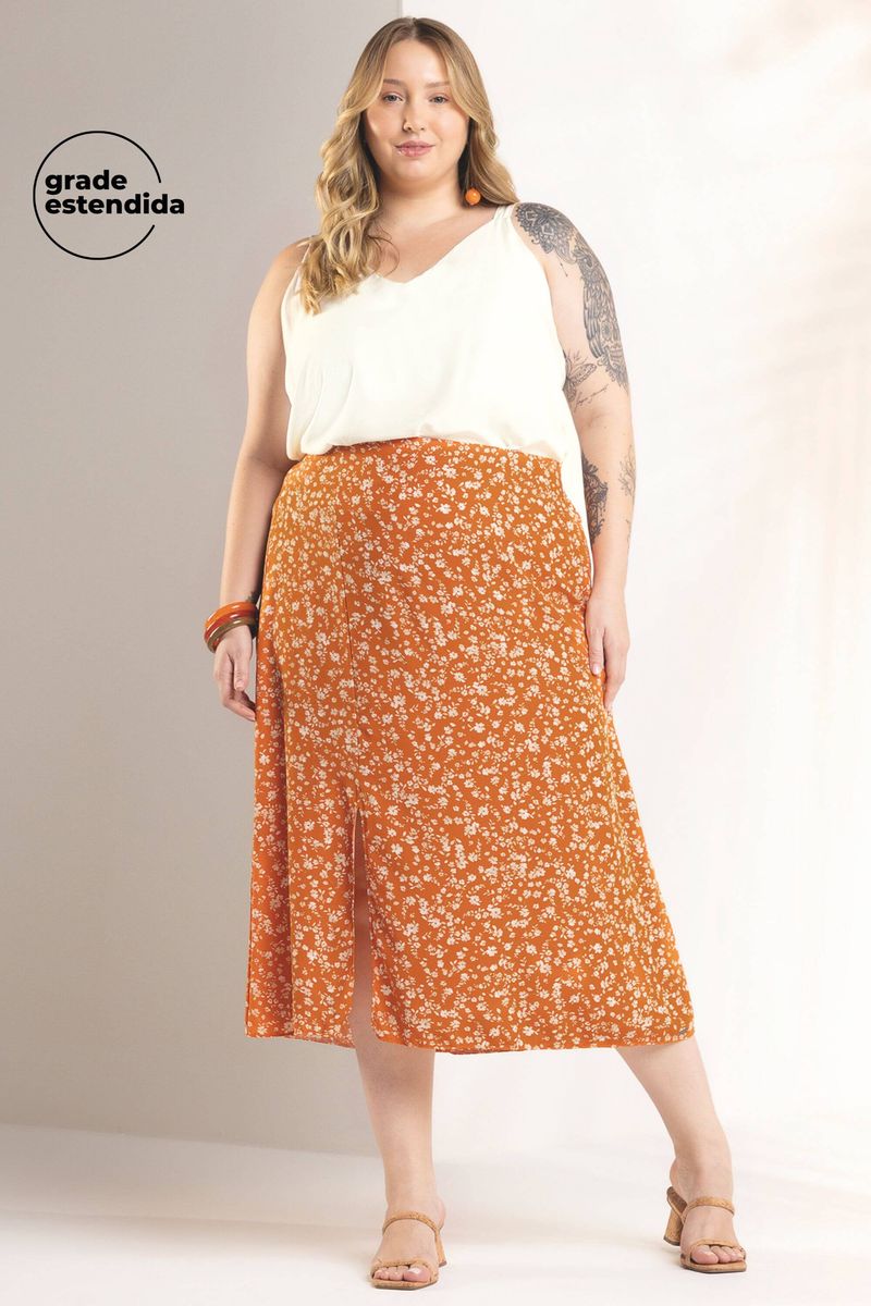 AdultoFemininoSaias FemininoSaia Feminina Floral Miudo Marialícia Laranja