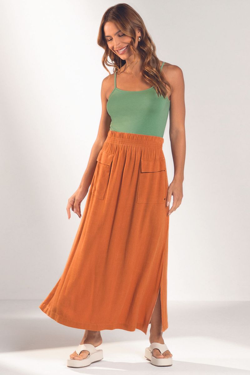 AdultoFemininoSaias FemininoSaia Feminina Com Bolsos Marialícia Laranja