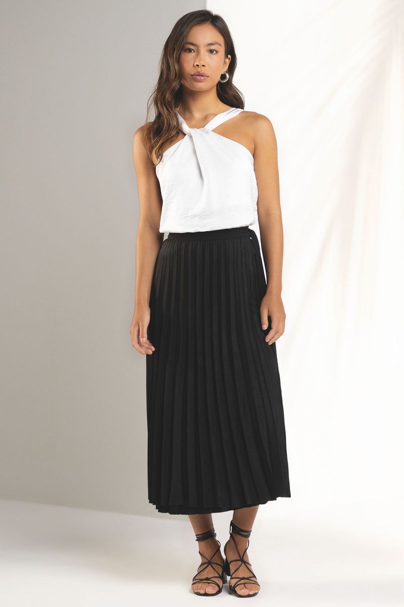 Saia Midi Plissada Feminina Marialícia Preto REF: 183797-7001