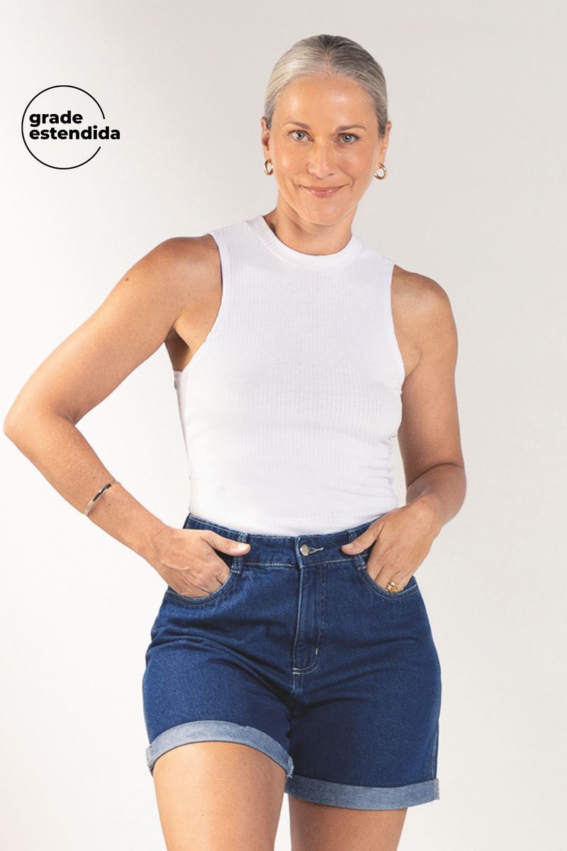 AdultoFeminino Plus SizeShorts Plus SizeShort Feminino Jeans Barra Dobrada Marialícia Azul