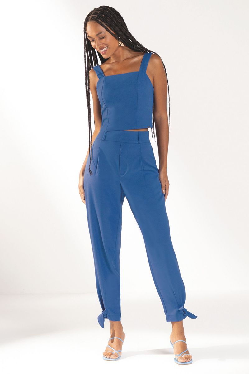 AdultoFemininoCalças FemininoCalça Feminina Amarração Barra Marialícia Azul