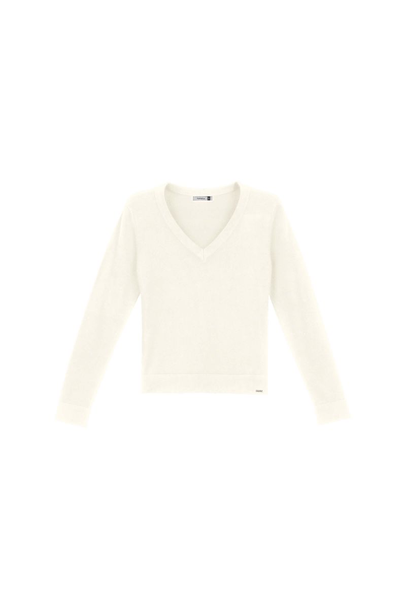 Suéter Feminino Tricot Decote V Marialícia Bege REF: 183833-2037