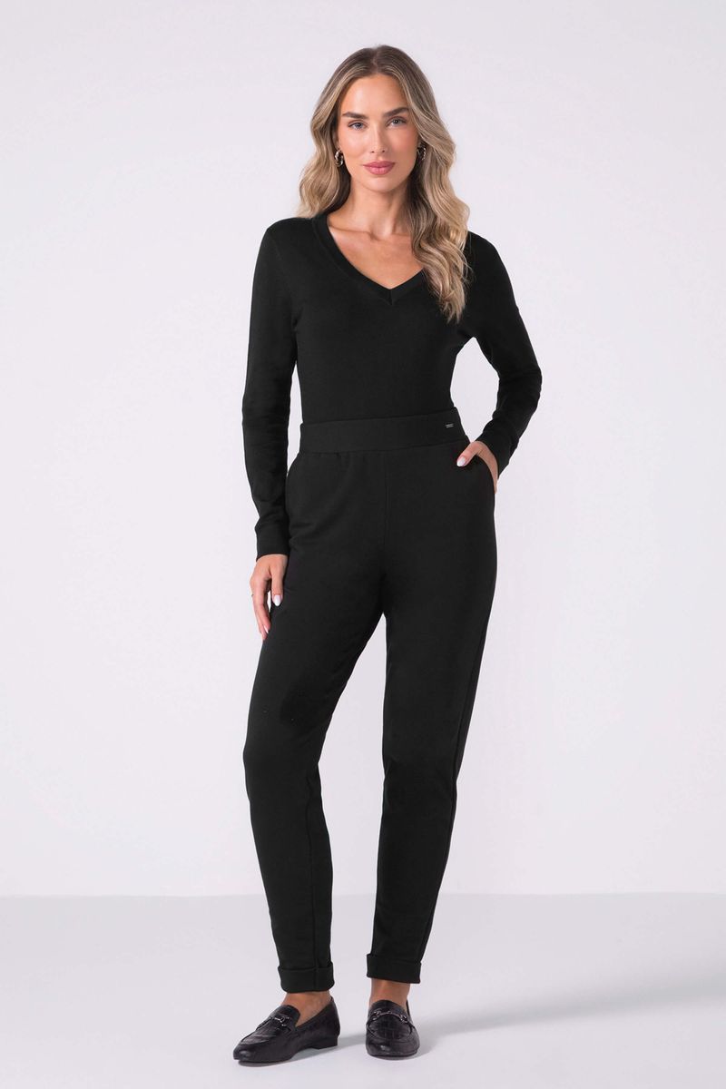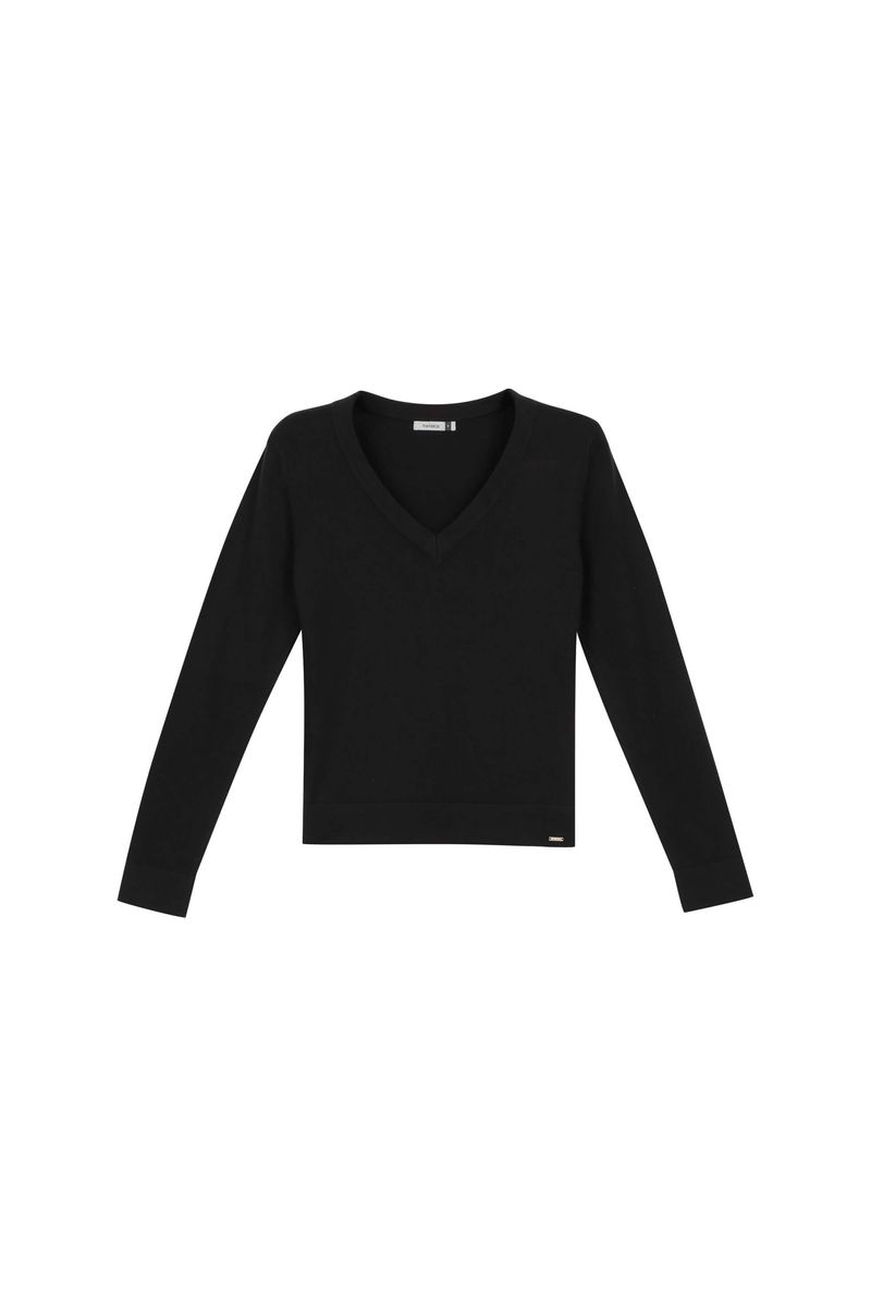 Suéter Feminino Tricot Decote V Marialícia Preto REF: 183833-7001