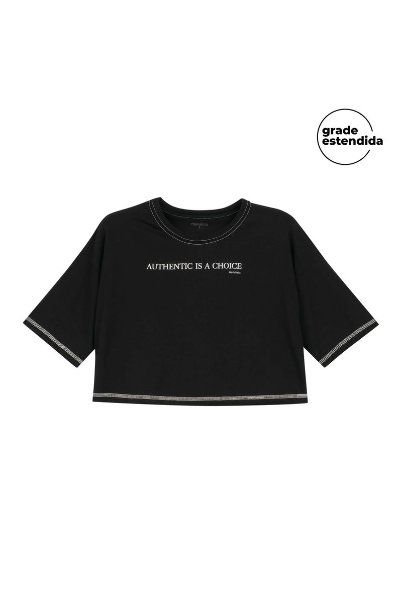 T-Shirt Feminina Cropped Marialícia Preto REF: 183849-7001
