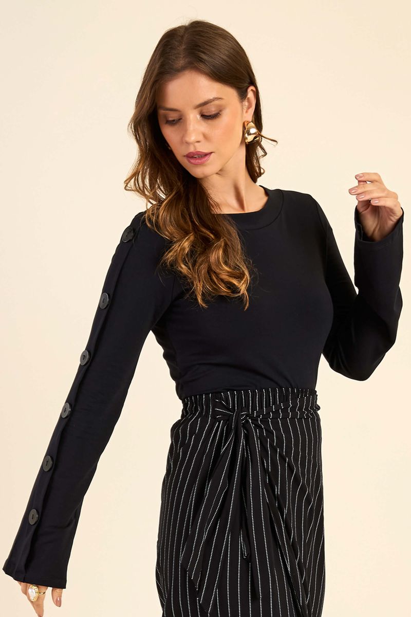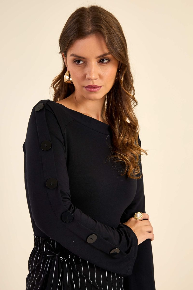 Blusa Feminina Gola Assimétrica Marialícia Preto REF: 183866-7001