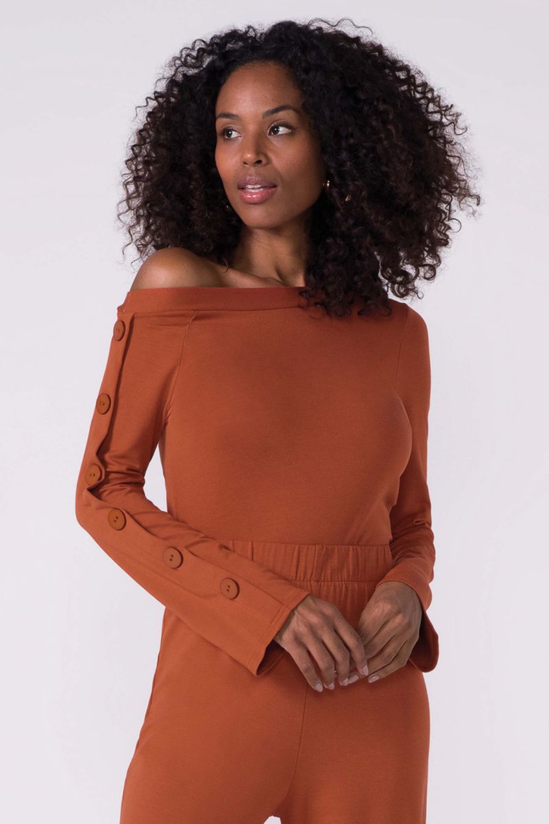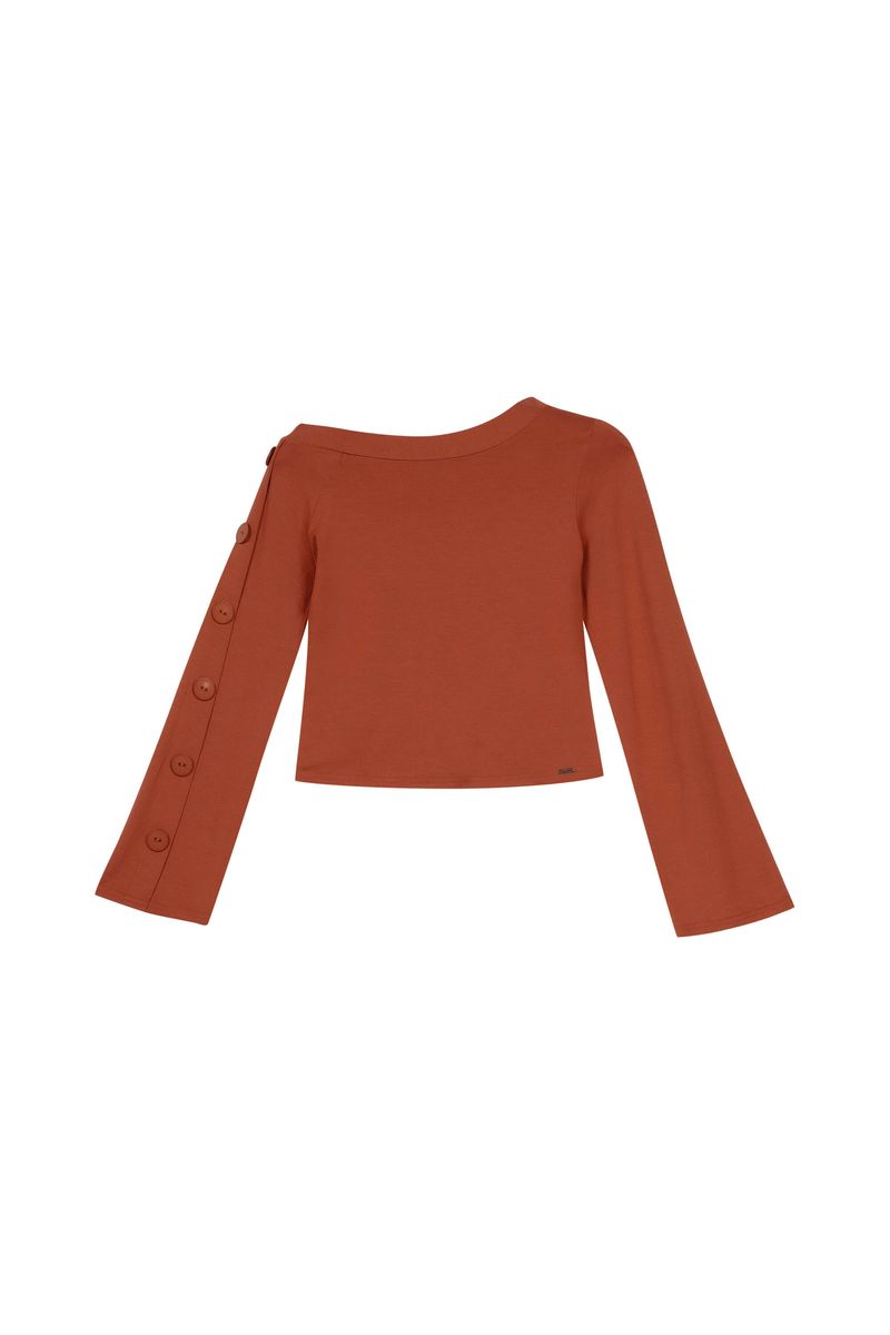 Blusa Feminina Gola Assimétrica Marialícia Marrom REF: 183866-8036