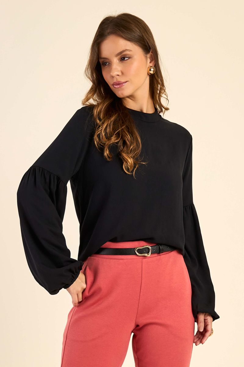 AdultoFemininoBlusas FemininoBlusa Feminina Manga Longa Bufante Marialícia Preto